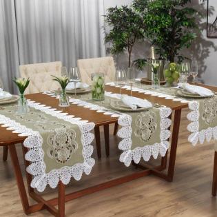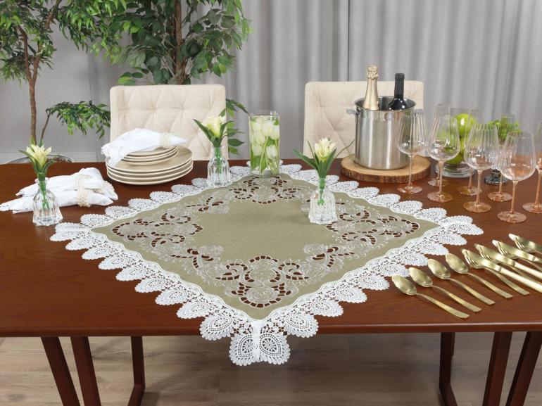 Centro de Mesa Quadrado com Bordado Richelieu 85x85cm - Copenhague Bege - Dui Design