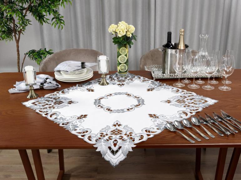 Centro de Mesa Quadrado com Bordado Richelieu 85x85cm - Orion Natural - Dui Design