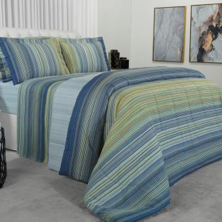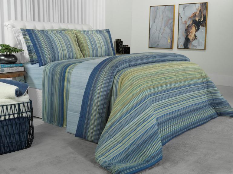 Jogo de Cama Casal Percal 180 fios - Tokyo Indigo - Dui Design