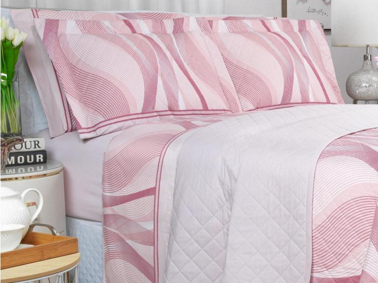 Kit: 1 Cobre-leito Casal + 2 Porta-travesseiros Percal 180 fios - Platinus Rosa Velho - Dui Design