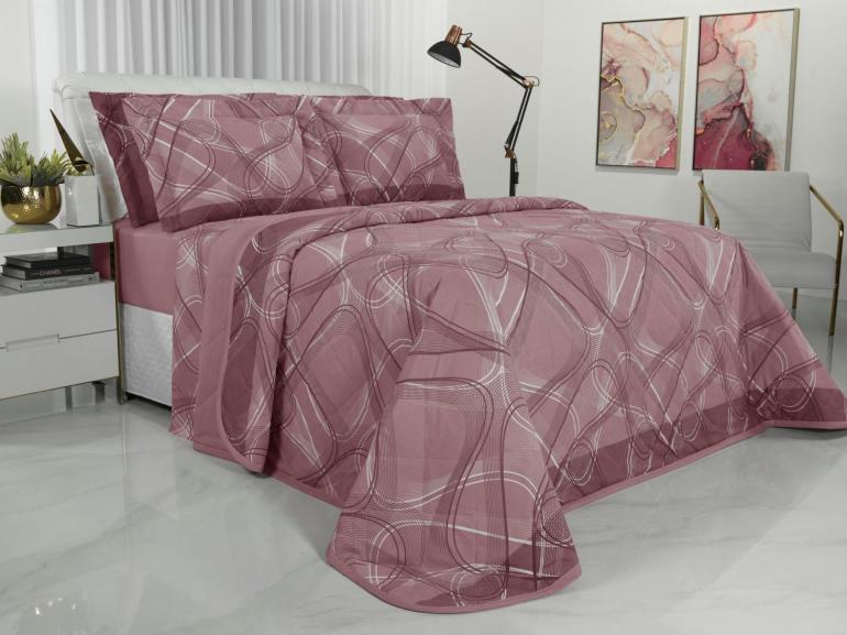 Kit: 1 Cobre-leito Casal + 2 Porta-travesseiros Percal 200 fios - Normani Mauve - Dui Design