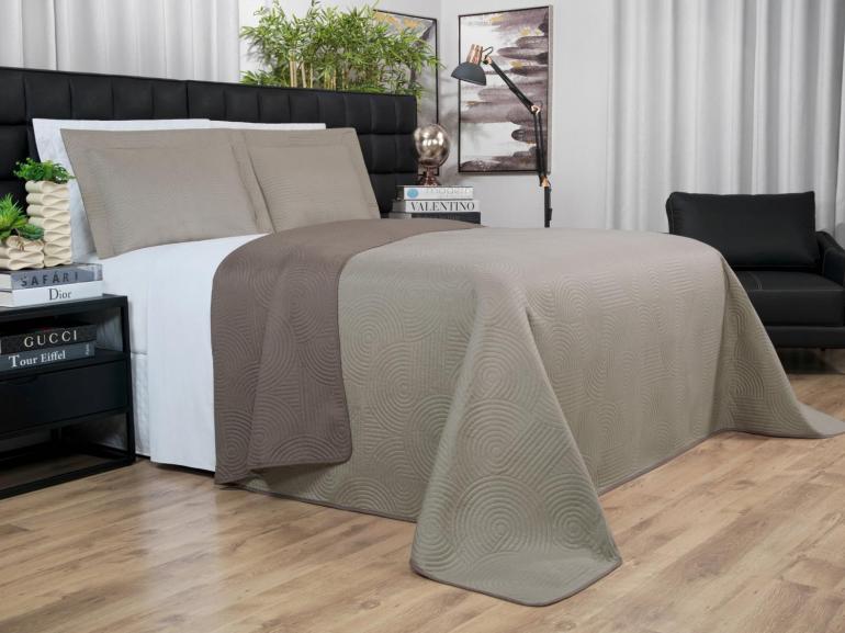Kit: 1 Cobre-leito Casal Bouti de Microfibra Ultrasonic + 2 Porta-travesseiros - Blend Taupe - Dui Design