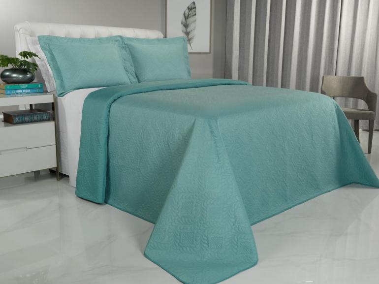 Kit: 1 Cobre-leito Casal Bouti de Microfibra Ultrasonic + 2 Porta-travesseiros - Haven Turquesa - Dui Design