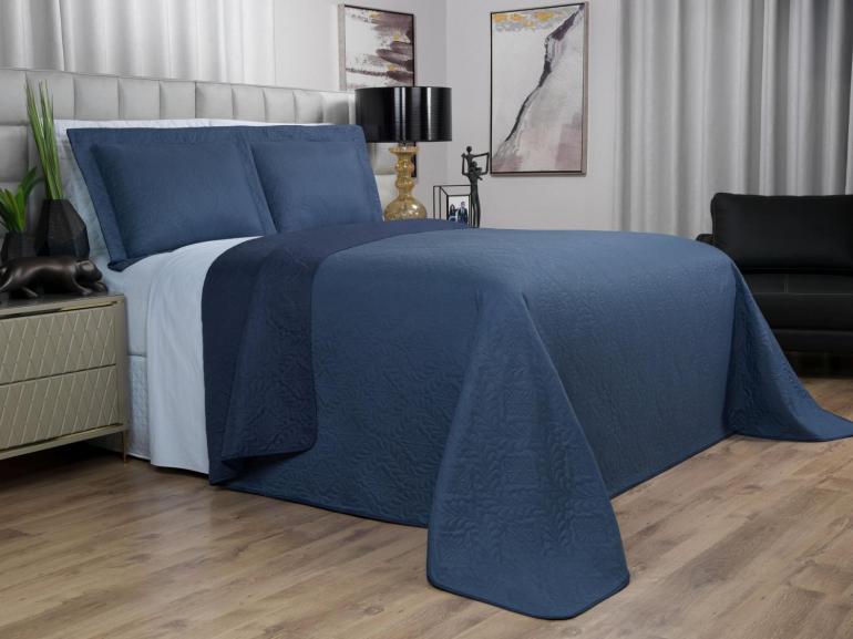 Kit: 1 Cobre-leito Casal Bouti de Microfibra Ultrasonic + 2 Porta-travesseiros - Serenity Azul Stone - Dui Design