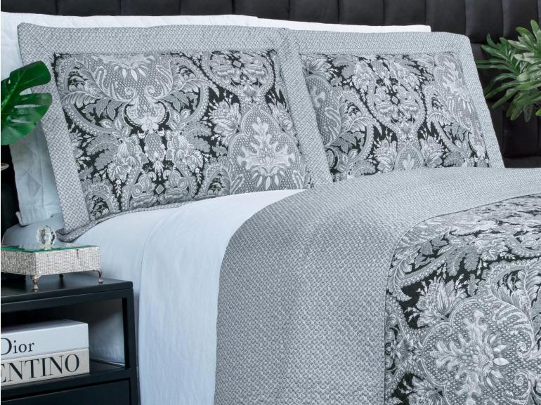 Kit: 1 Cobre-leito Casal Bouti de Microfibra Ultrasonic Estampada + 2 Porta-travesseiros - Prestige Preto e Branco - Dui Design
