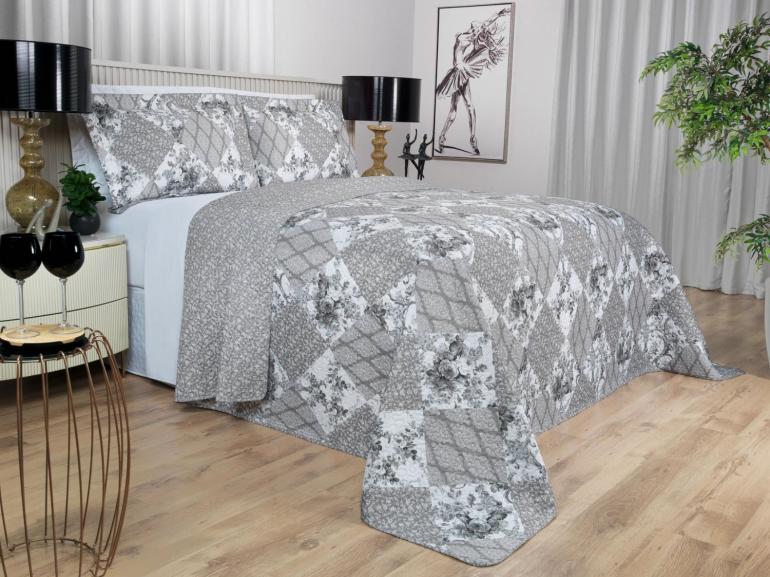 Kit: 1 Cobre-leito Casal Bouti de Microfibra Ultrasonic Estampada + 2 Porta-travesseiros - Violet Preto e Branco - Dui Design