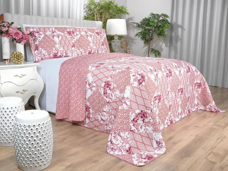 Kit: 1 Cobre-leito Casal Bouti de Microfibra Ultrasonic Estampada + 2 Porta-travesseiros - Violet Rosa Velho - Dui Design