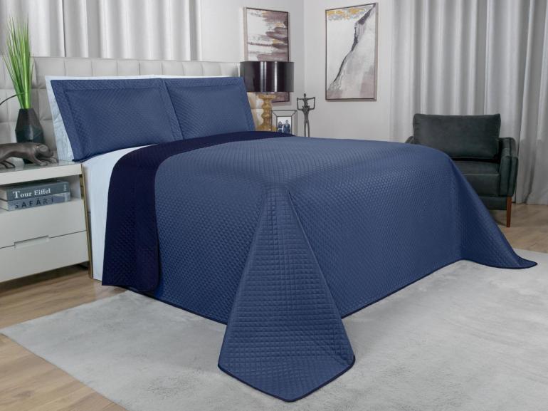 Kit: 1 Cobre-leito King Bouti de Microfibra Ultrasonic + 2 Porta-travesseiros - Prisma Indigo - Dui Design