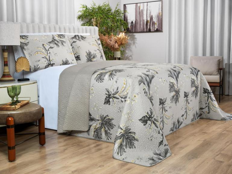 Kit: 1 Cobre-leito King Bouti de Microfibra Ultrasonic Estampada + 2 Porta-travesseiros - Eden Taupe - Dui Design
