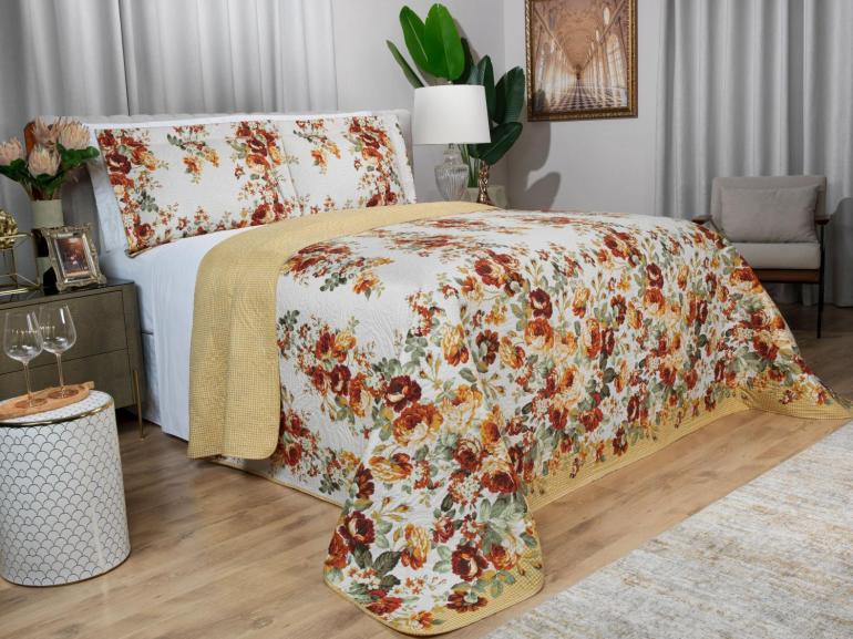 Kit: 1 Cobre-leito King Bouti de Microfibra Ultrasonic Estampada + 2 Porta-travesseiros - Isadora Gold - Dui Design