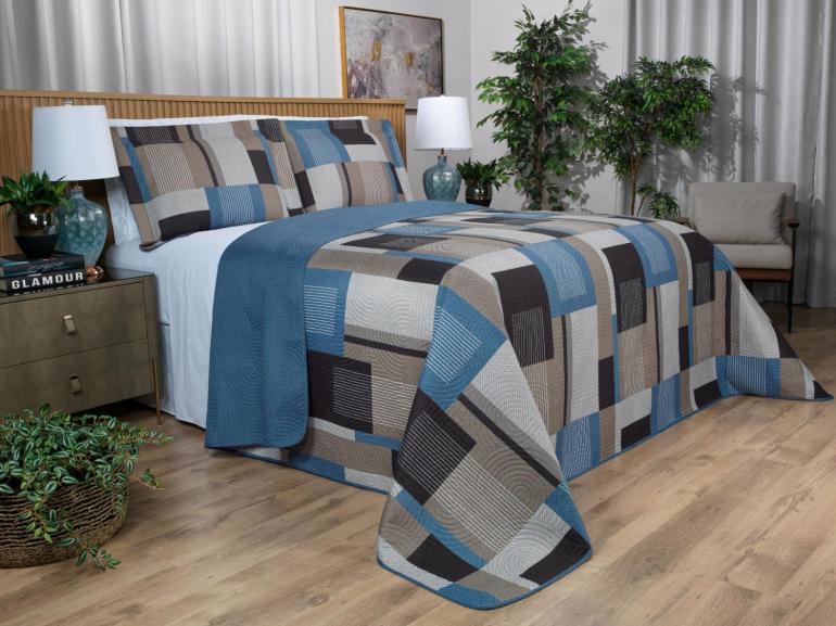 Kit: 1 Cobre-leito King Bouti de Microfibra Ultrasonic Estampada + 2 Porta-travesseiros - Montana Jeans - Dui Design
