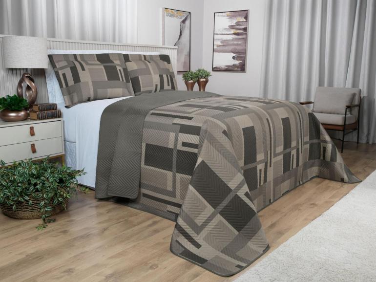 Kit: 1 Cobre-leito King Bouti de Microfibra Ultrasonic Estampada + 2 Porta-travesseiros - Oslo Taupe - Dui Design