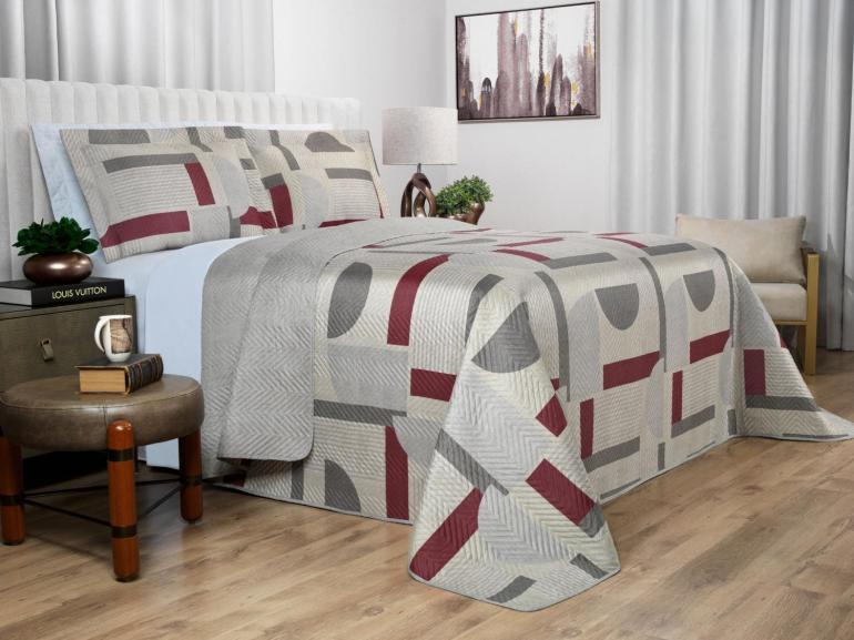 Kit: 1 Cobre-leito King Bouti de Microfibra Ultrasonic Estampada + 2 Porta-travesseiros - Vulcano Stone - Dui Design