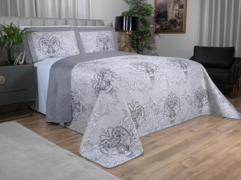 Kit: 1 Cobre-leito Solteiro Bouti de Microfibra Ultrasonic Estampada + 1 Porta-travesseiro - Livorno Prata - Dui Design