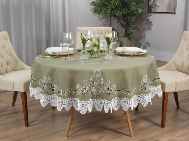 Toalha de Mesa com Bordado Richelieu Redonda 180cm - Copenhague Bege - Dui Design