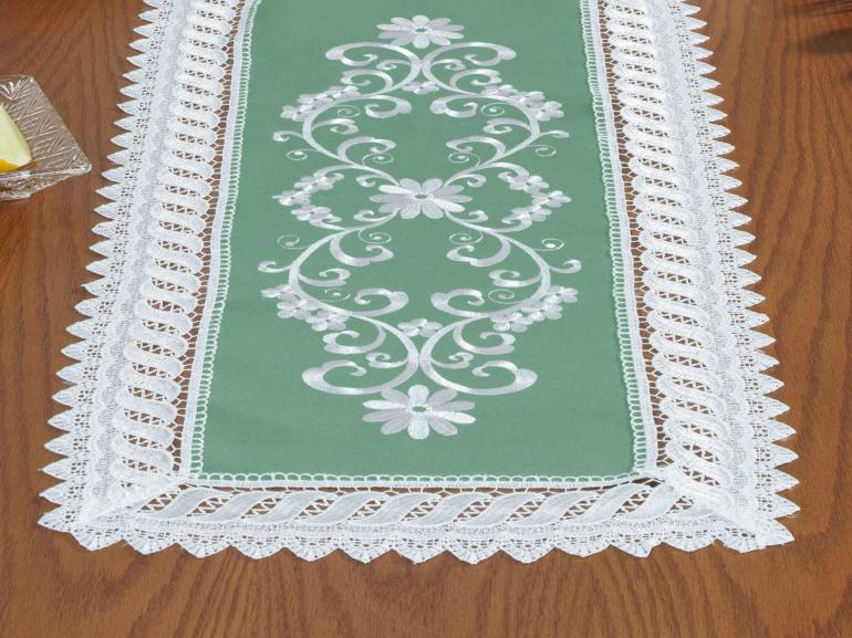 Trilho de Mesa com Bordado Richelieu 40x85cm Avulso - Sofia Verde - Dui Design