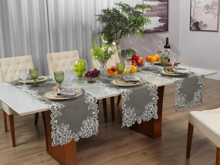 1 Trilho de Mesa com Bordado Richelieu 45x170cm