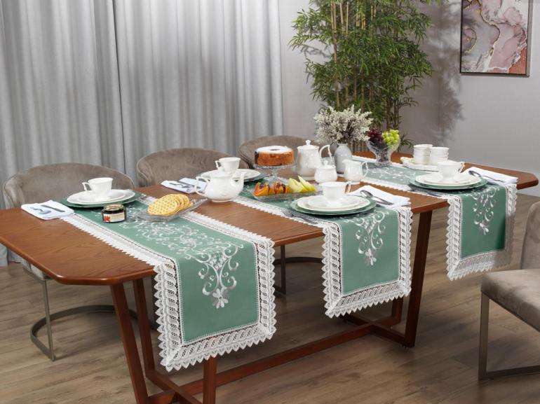 Trilho de Mesa com Bordado Richelieu 45x170cm Avulso - Sofia Verde - Dui Design