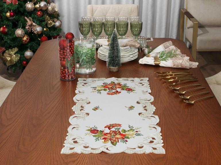 Trilho de Mesa Natal com Bordado Richelieu 40x85cm Avulso - Celebrare Natural - Dui Design